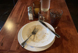 We started our journey with a side trip to Ireland for some bangers and mash at the local Irish pub.  The meal looked so good when it was brought out that my companion forgot to take a picture of it, but you can see that he cleaned his plate.  Just use your imagination to picture a delicious sausage, mashed potatoes, and English peas on the plate.  This is definitely a place to stop if you like Irish food: it's not a fancy pub, but to us what's more important is the food and the people serving the food, not how closely the space recreates a typical Irish pub.