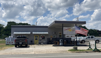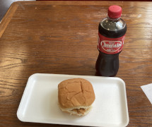 I knew that at some point on this trip my companion would drag me into one of those hole-in-the-wall places, and today that finally happened.  We went into this former gas station now known as the Sunshine Grill and he had a BBQ sandwich and a Cheerwine and an ice cream sandwich.  I chided him about the nutritional value of that meal, but he said it was good, quick, and cheap.  I decided to graze on the grass out back, especially when a construction crew came in to have their lunch.  Perfectly nice people according to my companion, but you might imagine what they were like after a hard morning's work on a 94 degree day.
