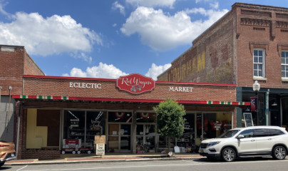 Another small town that's lost a lot of its lifeblood over the years.  It seemed like the only two shops left were side-by-side: a giant antique mall and a mercantile of sorts.  We checked them out right after lunch, finding that the antique mall went much further back than we could have ever imagined.  Still, we found nothing of interest and most of the rest of town was vacant, though we found a cute little out-of-place mini gothic building attached to the end of one of the regular buildings.  We finally went over to the library, only to find the front door propped open, which was highly suggestive that the A/C was not working.  We didn't bother to go inside – my companion took care of his IT work from the parking lot and then we went on down to the Riverside Mill "antiques and outlet" center.  Never have we seen so much 'stuff' under one roof.  Last year my companion visited a place in Virginia that claimed to be the largest antique mall in the country, but this one is definitely giving that one a run for its money.  The only problem was that there were hardly any customers there, which always makes a huge place seem a bit, well, eerie.  We traipsed through the three floors of merchandise then returned to our hotel for the rest of the afternoon so I could rest my hooves while he resumed his IT work.