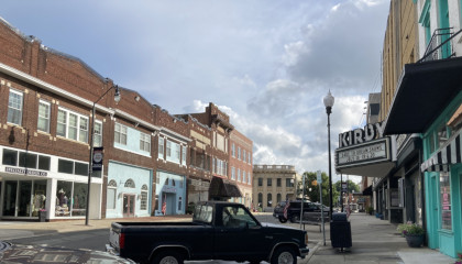 Made a brief stop in Oxford, just west of Henderson, and walked around the downtown, which still has some life in it.  I love the architecture you find in these old towns – there's a charm to seeing the rows of buildings that in their heyday had their business spaces at ground level and residences or offices on the upper levels, harkening back to a time when shopkeepers lived in town because it was simply too much to travel into town every day to run a business.  And, of course, it's always nice to see a classic theater that's still being used as a theater.