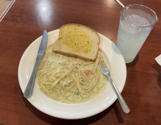 The challenge of checking out the local food scene is that you never know what you're going to actually get until you're seated and the food arrives.  We picked this place out via the maps and went over to it, and we really were not sure what to make of it as we went inside.  Definitely a few steps up from a "hole-in-the-wall", but certainly not in the same ballpark as a chain seafood place.  The menu was shrimp heavy, so my companion tried the shrimp alfredo while I grazed on the salad bar.  It wasn't all that bad, though it remains to be seen how my companion will feel overnight, if you know what I mean.