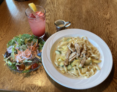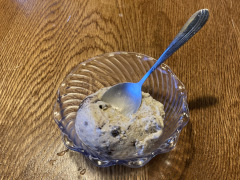 Our last visit to the Peaks of Otter Dining Room before we head on to our next destination.  I finally got my picture made, and we enjoyed a chicken pasta alfredo and a house salad, and then topped it off with another cookies and cream ice cream.  Absolutely cannot complain about the food here, albeit as with any resort the pricing is a bit high, but since it's a holiday, I'm okay with splurging with my companion's money :-)