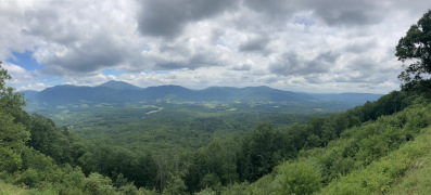 All good things must come to an end, and so we had to leave Peaks of Otter and head back south.  Unfortunately, there's a closure of the Blue Ridge Parkway right now just below the Peaks of Otter.  We decided to go as far south as we could, then come back to VA 43 north and take it up to Buchanan, from which we detoured down to Roanoke before picking up the parkway where it crosses US 220 on the south side of the city.  The views up here are breathtaking: kind of like a well fitting prequel to the Shenandoah National Park further north.