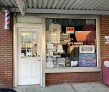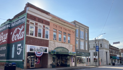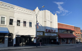 For an interesting change of pace, I can report that Downtown Mount Airy is bustling with business: I don't think we saw a single vacant storefront along the three primary blocks.  That's surely due to the town's embracing of hometown boy Andy Griffith and his classic TV show, The Andy Griffith Show, in which the fictional town of Mayberry was based very much on life in Mount Airy when Andy was growing up.  Now, the town tries to model itself after Mayberry with an oddly interesting effect.  About half the stores are what you'd expect to find in any small town: antique stores, general merchandise stores, small restaurants, specialty services, etc.  The other half are all clamoring to claim some connection to the fictional Mayberry, and it seems the tourists are eating it up.  On one block, you can find Floyd's Barber Shop, with pictures of the four "Floyd"s who have worked there over the years.  Oddly, it's up for sale, so if you'd like to become the fifth Floyd, well, here's your chance.  Next door to the barber shop is Opie's Candy Store, which feels a bit unreal, and that's just the tip of the iceberg.  It's not as bad as places like Gatlinburg, Tennessee, but definitely heading in that direction.  There are still some historical and cultural elements intact, like the Historic Earle theater, which still hosts the "Merry-Go-Round" radio broadcast, started 77 years ago in 1948, every Saturday on WPAQ 740 AM.  We did our walking tour around six in the evening, so we didn't get to go in anywhere, but we're going back tomorrow at lunchtime to see some of the more interesting places.