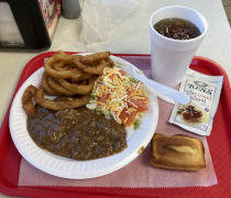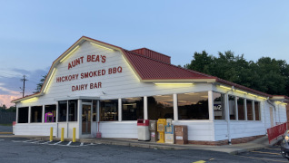 On the edge of Mount Airy in a former Dairy Queen barn-style building is a restaurant proclaiming itself to be Aunt Bea's, undoubtedly referencing the matriarch of the Andy Griffith Show.  That said, I just can't picture the Mayberry Aunt Bea giving her stamp of approval to this place.  Granted, my companion didn't try the BBQ, but that probably would not have made any difference.  Don't get me wrong: the place was clean and bright and the staff friendly, but the food felt a little too much like what you might have gotten at the former Dairy Queen.  In my mind, I'd expect a place named for Aunt Bea to be one of those nice meat and two vegetable places.  This place did have some of those plates, and my companion got a country fried steak, but the vegetables were not what you'd expect, more than half along the lines of french fries and onion rings.  We were able to get a small side salad, but there really wasn't another "healthy" vegetable on the menu.  The food wasn't all that bad, but a little on the greasy side.