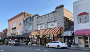 We wandered about and went in half a dozen shops, but nothing was terribly impressive.  We wanted to tour the Historic Earle theater – the signs suggested it was open daily, but the door was locked both times we went by it.  So, we ended up at the Regional History Museum, which was pretty cool (both figuratively and literally, the latter much appreciated on a 95 degree day), so we spent nearly ninety minutes in there.  Exhibits range from early history to local music (Donna Fargo is a native of the area among other musicians), and a cool fire fighting exhibit in the basement with three classic fire engines.  One of them had a slate of unlabeled buttons on the display board, so my companion pressed one of them and we were bombarded by the recorded sound of the engine starting up – I had to cover my ears with my hooves.  I didn't think that recording would ever end, but it did and he tried some other buttons: one sounded the bell, one the siren, and one made the red light come on.  Don't think we've ever come across a fire truck exhibit that was so interactive.  Went back out into the heat and looked at a few more shops before deciding to return to our hotel.