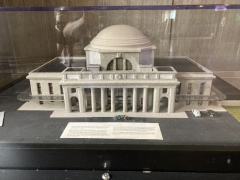 Years ago, my companion's aunt worked at the Science Museum of Virginia, and so he got to visit it many of the times his family went up to visit with her. Even though she's long since retired, it just felt natural to stop off at the museum and see what it looks like today. One of it's notable features is that it's housed in the old downtown train station, so it has that historic train station feel maintained throughout the building, including a room that has many large historic photos of the building when it was still being used as a station. The exhibits were intriguing, ranging from an exhibit on motion to an exhibit on space science to a special exhibit on steampunk art, something my companion knows a bit about. There's also an outdoor area with a few train cars and a large submarine (sorry, you can't go inside the submarine: you can only view the outside and read the descriptive panels about its history). One of the cooler parts inside is right in the lobby, where they have a huge example of a Foucault Pendulum, which shows the rotation of the earth through little wooden blocks that get knocked over by the pendulum as it swings back and forth. They've had that pendulum for over thirty years, maybe even forty, making it a mainstay of the museum.