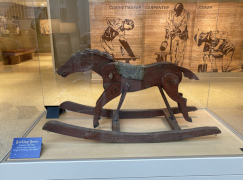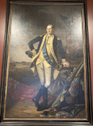 We started our day at the Art Museum, which was a convenient place to pick up our official ticket in a lanyard pouch, and to get a pricy but tasty lunch in the museum cafe restaurant. We then looked over the artwork and artifacts to help put our minds into the eighteenth century. It was a little strange, as we'd been here back in 2018 when they had just started renovations on the museum building. Back then, you entered through the old hospital, going down to an underground tunnel and over to the main building, then back up to ground level. Today, you enter through the new ground level entry concourse with the new cafe on the left, and then proceed into the upper level of the original main building, with more exhibits on the lower floor including the old tunnel part of that exhibit space, but the access to the old hospital is now blocked off. Confusing, isn't it? In the pictures below, take note of the statuette of Benjamin Franklin that was labeled "Washington". That's a European made piece, and those kinds of mistakes were not uncommon, as the people of Europe were hearing about the American patriots, but in an age before photography they didn't always know who was who.
