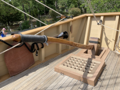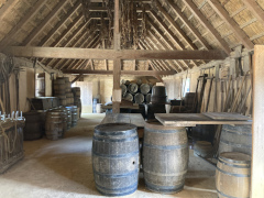We arrived at the Jamestown Settlement about two in the afternoon and had three hours to explore it, which was just about right, though we had no time to go over to the historic site (both closed at 5 PM daily). If you can get their earlier and see both, that would be ideal, as I'm sure it would be interesting to put what you see at the Settlement site in true historic (and geographic) perspective. As it was, we enjoyed what we saw at the settlement, starting out in the museum, which is huge. From there, we went outside and hiked down to the Powhatan village, exploring the recreated huts and watching some costumed interpreters presenting examples of native daily work life. From there we went down to the docks, where they have recreations of the Discovery, Godspeed, and Susan Constant, albeit the latter was out that day, being refurbished by a New England boat builder. We went onboard one of the other two and got a close-up look at just how cramped the conditions were for such a long voyage across from Spain. We then went into the fort and explored the various buildings there before returning to the museum and heading out just before they closed at five.