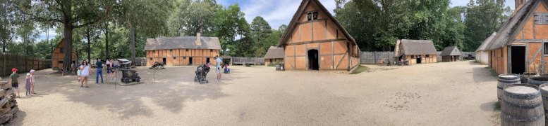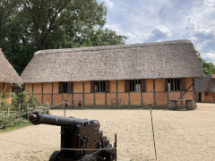 We escaped the 1700s to go back to the 1600s and visit the Jamestown Settlement, a place my companion had not been to since he was a small child. So, just to confuse you, there's actually two Jamestowns: the Jamestown Settlement and the Jamestown Historic Site. The former is a recreation of the fort and Powhatan village, with a modern building housing a museum, cafe, and education center. At the time it was created, they didn't know exactly where the original Jamestown had been, as the site had been abandoned for more than two centuries with no records kept of its location. In more recent times, archaeologists have been able to locate the original site and unearth various foundations for the fort. This site is a national historic site and open to the public, but it's just an archeological site: nothing has been recreated. We didn't have a chance to see the historic site, so we can't comment on it. More about the Settlement site in a moment.
