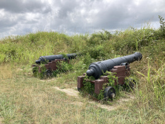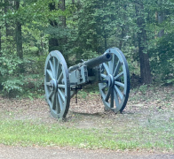 We've gone back to the days of the Revolutionary War, exploring the battles that took place near the village of Yorktown. We're really not war buffs at all, but having heard about Yorktown all of his life and having never had a chance to see it, my companion wanted to stop off for at least a little while. We started out by visiting the indoor museum, then walked over to the village and had lunch down on the riverfront beach. Finally, we got in the car and drove the loop through the various battlefield sites. One of the interesting footnotes of history is that Yorktown also played a role in the Civil War, though of course most people only think about it as a Revolutionary War site.