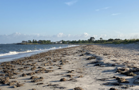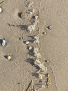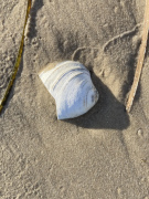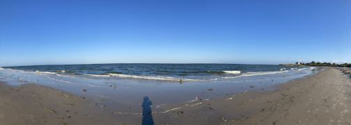 We made it to the Chesapeake Bay and got an amazing treat. Back in Salem, we'd gone through a library book of good hikes in Virginia, and had noted one in Grandview on the northeastern edge of the Hampton Roads area. We were coming out this way to drive through the area where some of my companion's relatives had once lived, so we went on out to Grandview, having had no appreciation before for what existed up in this part of the peninsula. When you arrive at the preserve, you park on the street, so your first views are very inauspicious. However, a half mile hike down a sandy path surrounded by marshes brings you out onto the beach facing the bay, which is so large that it feels as if you're looking out at the Atlantic Ocean itself. I can't find a word to describe how amazing the views were that day – everything about them was perfect. It was humbling to walk up the beach about a mile and take in an area that was mostly undisturbed and completely natural. We really didn't want to leave, but they won't let you sleep on the beach, so we had to move on and find a place to spend the night.
