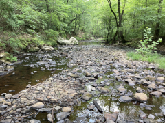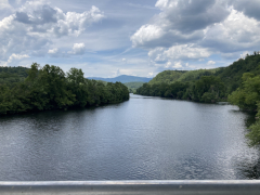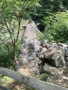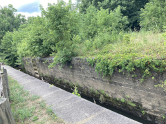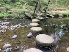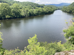 After a grab-and-go brunch, we set off back to the north to revisit the James River Visitor's Center and get a close-up view of the river itself. The crossing of of James River is the lowest point of the Blue Ridge Parkway, and between the lower altitude and the river setting, you can feel the difference in climate between here and the majority of the Parkway that is up on the mountain ridges. At this point, the James is not nearly as wide as it is in Richmond and eastward out towards the ocean, but it's still a nice, moderate size river. The visitor's center is small, but on the grounds is a preserved section of a canal that used to run alongside the river. There's also a small, modern, pedestrian pier under the Parkway bridge, letting you get out over the water and look up and down the river, and a Trail of Trees hiking trail that runs about a mile through the nearby woods.