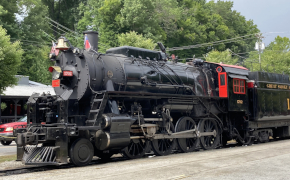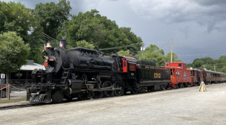 Another quiet day with more remote work and then more walking around downtown Bryson City. This time, my companion got his exercise by walking down "School House Hill" from our bed and breakfast into downtown. We looked in some of the shops we'd not gotten to before, and my companion found a nice gift for his parents in the Christmas shop. We finished off the day with dinner at Pasqualino's Italian Restaurant, which my companion likes to visit whenever he's in town. Below are some pictures of the Great Smoky Mountains Railroad train which is based in Bryson City and does excursions out to Dillsboro and back with a ninety minute layover for lunch and shopping. My companion did that trip a few years back, but decided not to do it again this time.
