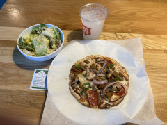 With Metro Diner closed, we wandered around the shopping center and found a Mod Pizza. We'd never been to one before, so we gave it a try. With 6" pizzas, the portion size is just right for us, and the style reminds my companion of Uncle Madio's Pizza Joint, which we used to visit a lot until the locations near us closed up in the late 2010s. The staff at this Mod Pizza were extremely nice and helpful and the food was great, too, with real lemonade to boot.