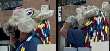 Finally made it to Southport, but got here so late that we didn't feel like going any further than the hotel area. So, we ended up at a Bojangles again -- at least it's a North Carolina original. We walked across the street and realized along the way that the outside lights had been turned off, even though it was only 9 PM and they were supposed to be open for dine-in until 10 PM. Since the inside lights were on full blast, we tried the door and to our surprise, it was unlocked, so we went in and spoke with the nice lady at the counter. Well, they were out of chicken – imagine that, a chicken restaurant that's out of chicken! Honestly, this isn't the first time we've run into this: I think they only prep a certain amount of chicken each day and don't have the capacity to prep more in the evening if they should get slammed and run out. But, they were able to make us a bacon-egg-and-cheese biscuit and gave us a large fry box full of Bo-Rounds, so we were well fed. The really amusing part was that as we sat and ate, a Domino's delivery driver showed up and brought the staff two pizzas! (Q: Were they BBQ chicken pizzas?) I guess that's what you do when you run out of chicken at a chicken place. Even stranger, the guy went out to his car and came back in wearing a really nice gray cat mascot head and gloves. I wish I could have heard the conversation with the two staff members, as I was really curious as to what that was all about – the staff seemed to know the guy pretty well, so I'm guessing this is far from the first time they've ended the work day with pizza.