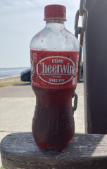 One of my companion's favorite drinks is Cheerwine, which was created in North Carolina and has been produced there for over a hundred years. It's a cherry/black cherry flavored soda (no, there's no alcohol in it despite the name). Interestingly, Wikipedia describes it as having "an unusually high degree of carbonation compared to other soft drinks." Interesting because my companion opened his store-chilled plastic Cheerwine bottle, had a little, and closed it, then we went down a block to the waterfront to enjoy the view. When he opened the bottle again, it just spewed out everywhere, soaking his arm, shorts, and socks. He has no idea how that happened, as he'd never had that happen before. Thank goodness I'd had the good sense to sit on the other side of him – can you imagine how hard it would be to get red Cheerwine out of bright white wool? Ah, well, at least he didn't loose all that much of the soda, though his shorts and socks may never be the same again.