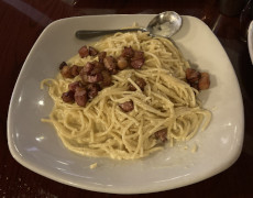 After a full day in downtown Southport, we returned to the hotel and went to the nearby Bella Cucina for dinner, my companion craving a little pasta. The food was good and the portions plentiful, the server nice and friendly. Overall a great combination. Unfortunately, since we're hitting the road again tomorrow, we couldn't take the leftovers with us, but that's life sometimes.