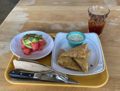 After so many years, we made it to Chef and the Farmer, or more precisely, "The Counter at Chef and the Farmer". Not so sure about Chef Howard: she was eyeing me with that "mmm ... new lamb entree" look in her eye … okay, okay, I kid you like a goat. I'd imagine that Vivian Howard probably wasn't even in the building today, but my companion got to try her pork samosas and I nibbled on her watermelon salad, which to my surprise was pretty good (a combination of watermelon and avocado with a hint of jalapeno). From what we came to understand, the space being used for "The Counter" was previously the Chef and the Farmer gift shop. Which, basically makes the place rather unpretentious, as there's no gift shop at all now, no mention of her cookbooks anywhere, and no mention of her PBS shows. If you didn't know about those things, you'd have no idea that this place was special in any way. Still, the food was great, even if we didn't get to see the actual restaurant space that was featured on "A Chef's Life" for so many years. We'll be back the next three days for more southern goodness before heading out to our next destination. My companion already has his menu planned, but you'll just have to wait and see what he's going to order next.