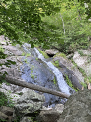 So, we detoured a little bit today, leaving North Carolina and heading up to the Blue Ridge Parkway in Virginia. This might seem a little odd when we we've been on a North Carolina culinary adventure, but there's a rhyme to our reason. Much of the Blue Ridge Parkway is closed in North Carolina due to a combination of damage from hurricane Helene last year and a three-year bridge replacement project affecting the northern thirty miles of the parkway in North Carolina until 2027. As my companion had been looking forward to enjoying a large portion of the parkway this year, he decided to rearrange his plans and head up to the Peaks of Otter at milepost 86 of the Parkway, just north of Bedford, Virginia, and spend the holiday weekend at the lodge there. It's a nice way to get back to nature and avoid the big crowds and the noisy fireworks. We didn't get any pictures of the lodge area today, as my companion had to do IT work once he got there, and then he wanted to get in a waterfall hike before dark. So, I've dug into his archives and pulled a few pictures from his last visit so you can see how great this place is. In essence, you have three lodge buildings plus a dining room / front desk building, all of which face a huge, gorgeous lake (Abbot Lake). The three "peaks" are (in ascending order of height) Harkening Hill, Sharp Top Mountain, and Flat Top Mountain. And don't ask about the "otter" part – no one knows how it got that name, though there's a number of theories.
