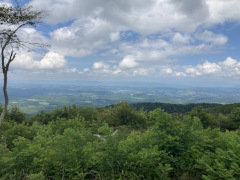 All good things must come to an end, and so we had to leave Peaks of Otter and head back south. Unfortunately, there's a closure of the Blue Ridge Parkway right now just below the Peaks of Otter. We decided to go as far south as we could, then come back to VA 43 north and take it up to Buchanan, from which we detoured down to Roanoke before picking up the parkway where it crosses US 220 on the south side of the city. The views up here are breathtaking: kind of like a well fitting prequel to the Shenandoah National Park further north.