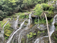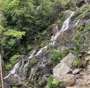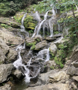 Sometimes I think my companion is completely loco. He wanted to visit the Catawba Falls a little ways east of Asheville, so we went down to the parking area and found it rather full, but we located a parking space. I bid him farewell as he started up the trail, warning him that the weather didn't look all that good. He made his way up to the lower falls and said that they were a bit crowded with people, so he went up the 580 steps (including navigating three stories of steps in a metal tower) to the upper falls. Just as he got there, the heavens let out once again with a good twenty minutes of heavy rain. I'd have been freaked out, but he said that he was there and there was no way to get anywhere else, so he just enjoyed the views while waiting it out. I guess that is a pretty impressive waterfall, and that's just the upper one. His pictures (below) of some of the lower sections are pretty nice, too. He then took the ridge trail back down, and says there were some nice mountain views along the way. He was still rather damp when he got back to the car, and I didn't want to let him in, but, well, he has a way of winning out with these kinds of disagreements.