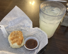 Right behind the Blue Ridge Inn is a nice southern restaurant with a slightly modern approach to its food. Whatever you want to call it, it's popular with the locals and the visitors, so expect to have to wait for a table. My companion decided to try the popcorn shrimp, along with cheese grits and broccoli. I found the grits and broccoli were good, but this time my companion got the bad end of the deal: the shrimp were perfectly fine, but he said the cocktail sauce tasted like they'd dumped half a bottle of horseradish into it. Cocktail sauce is supposed to have a little bit of that horseradish kick, but this was way over the top. He didn't feel like complaining, so we don't know if that's just the way they do it, or if this batch got mixed up incorrectly. In any case, he made do and got more than enough to eat (he could have done with about half the shrimp they served.) The ironic part of these oversized meals is that restaurants are costing themselves in the long run, because people then don't have room to buy dessert.