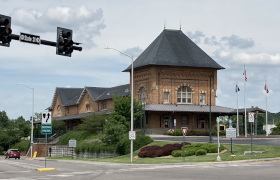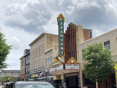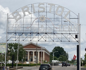 We headed straight over to Bristol via US 11 and settled in there for a day of exploration. My companion has to work remotely on many of these days (that's the only way we could do a seven-week adventure), so that limits what he can do on the weekdays. He found a good library and that became his home base, working there as needed and taking breaks out in the downtown of Bristol. Bristol itself is unusual in that it's really two cities: Bristol, Tennessee and Bristol, Virginia, which have grown together to have a common downtown and a main street (State Street) running along the Tennessee / Virginia state line. Thus, on one side of the street you're in Tennessee, and on the other side of the street you're in Virginia. The library was on the Virginia side, as was the restaurant where we had lunch, so we really spent most of the day in Virginia, but did cross over to see shops on the Tennessee side of State Street. We stayed here until late afternoon then left around four o'clock to head over to Damascus, where we would be staying for three nights.