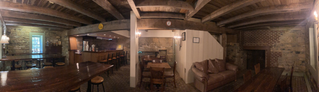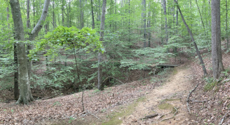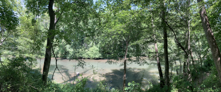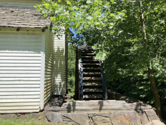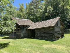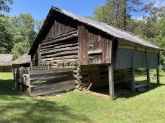 My companion had heard about this place for nearly two decades, but had never had time to explore it any of the times he was in the area. Finally he has his chance, and I went along for the views. Explore Park is located right alongside the Blue Ridge Parkway and the Roanoke River. Near the visitor's center, we fueled up at the Brugh Tavern (that's pronounced 'Brew' but written with the colonial spelling – first picture below is the basement dining room). My companion got a couple of chili dogs while we split an order of onion rings and iced tea. We then hit the trails, hiking down to a collection of 1800s buildings, then on down to the river where we sat and relaxed for a while. We headed back up around 7 PM, wanting to visit one other place before dinner.