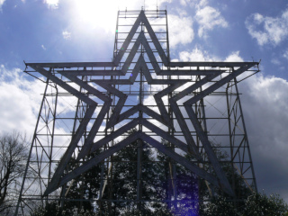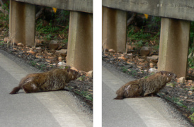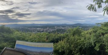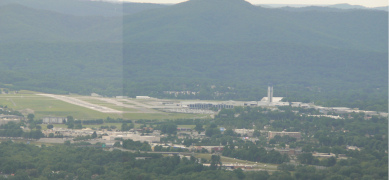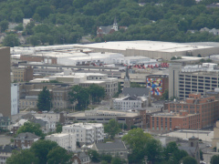 Roanoke is truly a valley city, nestled between two stretches of the Appalachian Mountains, which allows for some unique possibilities. Back in 1949, someone went up on the eastern mountains an erected an 88.5 foot tall metal star, complete with lighting, which shines every night over the Roanoke valley below. Not only can you see the star down below, you can even go up there and get a very humbling view of the city, and if you have the time, you can stop by the Mill Mountain Zoo, which is about a third of a mile back from the star's platform. We didn't have time to see the zoo today, but we enjoyed the view. The second panorama shot below shows the airport, probably a good ten miles away. The last pair of pictures are of a groundhog we saw near the parking lot. Probably the best groundhog pictures my companion has ever gotten, as they tend to be very shy around people (and no wonder, what with people driving them out of their holes every February to see if they see their shadows!) FYI, there's two ways up to the star and zoo: you can slowly wind your way up a narrow road from the city, or you can use the handy access road from the Blue Ridge Parkway, which is how we went.