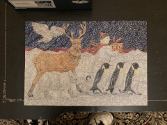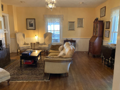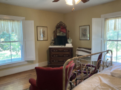 Our accommodations for the past two nights were at the Babcock House, which is a little more commonplace in having six or seven rooms. We had one upstairs near the front of the house, and while the floor was a little creaky, and the TV set rather small by modern day standards, it was otherwise a comfortable room. The parlor downstairs was lovely and had a nice period feel, but we spent most of our free time on the front porch, as my companion loves a good porch swing on a pleasantly mild night. That said, my companion did take the time to work a wooden jigsaw puzzle they had available in the parlor – one featuring a nice winter scene with a reindeer, penguins, and a snowman. Maybe not the right season for that theme, but it's the nice, cold thoughts that count when it's in the upper nineties outside every day.