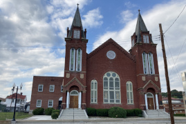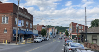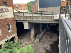 Clifton Forge is far from dead, but its not as thriving as it was in past decades. There's still some active stores downtown, including an Ace Hardware that spans the ground floors of about five buildings, but there's a lot of vacant spaces as well. My companion visited here regularly in his youth when his grandparents were alive, and remembers when there was more life to downtown, but on the upside the town is slowly trying to revive itself, and he wishes them the best of luck. One of the interesting quirks about the town is that it's built over a stream, so much of the core Main Street area is actually bridge decking, which becomes apparent when you get off to the side and discover areas like the one pictured below. Another tidbit of town history is that Clifton Forge has long been a hub of railroad activity and was once home to the C&O railroad machine shops. Workers lived in town and went down through tunnels under the tracks over to the railyard shops to do their daily work. The last picture shows the old pedestrian tunnel along Main Street. A little further west is the access to the old shop elevator for bringing equipment and supplies down to the railyard level.
