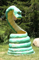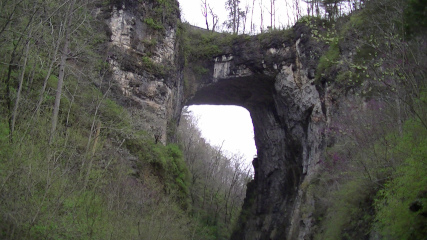 After the hotel, we went across the street to the Caverns at Natural Bridge*, but the parking lot was crammed full, so we left and went to the visitor's center for Natural Bridge State Park, which contains the actual natural bridge for which the area was named (see picture to the right, taken during a previous visit). We didn't go out to see the bridge, as we'd seen it not that many years ago, and it was a pretty darn hot day. Instead, we enjoyed a black cherry cola and an ice cream sandwich to help cool us down before continuing our journey.