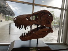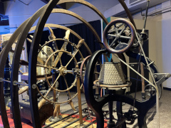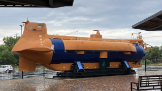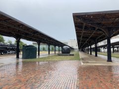 Years ago, my companion's aunt worked at the Science Museum of Virginia, and so he got to visit it many of the times his family went up to visit with her. Even though she's long since retired, it just felt natural to stop off at the museum and see what it looks like today. One of it's notable features is that it's housed in the old downtown train station, so it has that historic train station feel maintained throughout the building, including a room that has many large historic photos of the building when it was still being used as a station. The exhibits were intriguing, ranging from an exhibit on motion to an exhibit on space science to a special exhibit on steampunk art, something my companion knows a bit about. There's also an outdoor area with a few train cars and a large submarine (sorry, you can't go inside the submarine: you can only view the outside and read the descriptive panels about its history). One of the cooler parts inside is right in the lobby, where they have a huge example of a Foucault Pendulum, which shows the rotation of the earth through little wooden blocks that get knocked over by the pendulum as it swings back and forth. They've had that pendulum for over thirty years, maybe even forty, making it a mainstay of the museum.