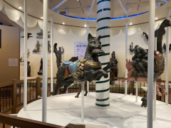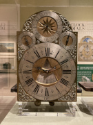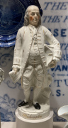 We started our day at the Art Museum, which was a convenient place to pick up our official ticket in a lanyard pouch, and to get a pricy but tasty lunch in the museum cafe restaurant. We then looked over the artwork and artifacts to help put our minds into the eighteenth century. It was a little strange, as we'd been here back in 2018 when they had just started renovations on the museum building. Back then, you entered through the old hospital, going down to an underground tunnel and over to the main building, then back up to ground level. Today, you enter through the new ground level entry concourse with the new cafe on the left, and then proceed into the upper level of the original main building, with more exhibits on the lower floor including the old tunnel part of that exhibit space, but the access to the old hospital is now blocked off. Confusing, isn't it? In the pictures below, take note of the statuette of Benjamin Franklin that was labeled "Washington". That's a European made piece, and those kinds of mistakes were not uncommon, as the people of Europe were hearing about the American patriots, but in an age before photography they didn't always know who was who.
