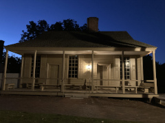 After the museum, we went back to our tavern room so my companion could do some remote work, and then we went around and visited some of the many shops and tourable buildings. Temperatures were up in the high nineties, so it was a welcome relief to make regular return visits to our room to cool off and work some more. Below is a sampling of some of the places we visited. The huge tree is a Compton Oak, a mainstay of the park-like grounds out in front of the governor's mansion.