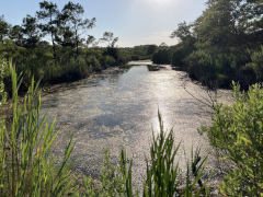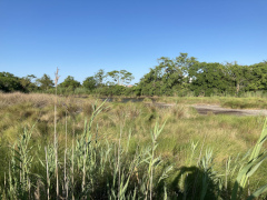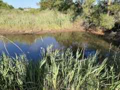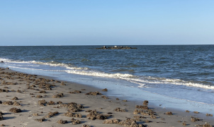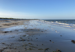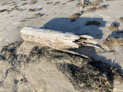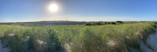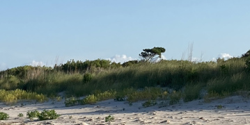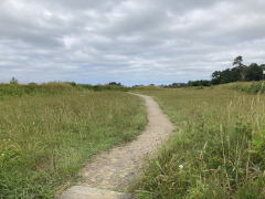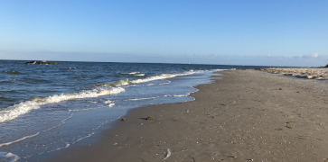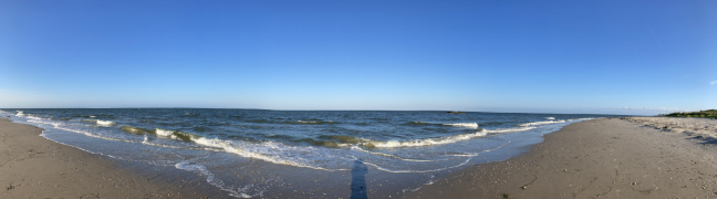 We made it to the Chesapeake Bay and got an amazing treat. Back in Salem, we'd gone through a library book of good hikes in Virginia, and had noted one in Grandview on the northeastern edge of the Hampton Roads area. We were coming out this way to drive through the area where some of my companion's relatives had once lived, so we went on out to Grandview, having had no appreciation before for what existed up in this part of the peninsula. When you arrive at the preserve, you park on the street, so your first views are very inauspicious. However, a half mile hike down a sandy path surrounded by marshes brings you out onto the beach facing the bay, which is so large that it feels as if you're looking out at the Atlantic Ocean itself. I can't find a word to describe how amazing the views were that day – everything about them was perfect. It was humbling to walk up the beach about a mile and take in an area that was mostly undisturbed and completely natural. We really didn't want to leave, but they won't let you sleep on the beach, so we had to move on and find a place to spend the night.