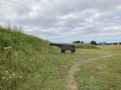 We've gone back to the days of the Revolutionary War, exploring the battles that took place near the village of Yorktown. We're really not war buffs at all, but having heard about Yorktown all of his life and having never had a chance to see it, my companion wanted to stop off for at least a little while. We started out by visiting the indoor museum, then walked over to the village and had lunch down on the riverfront beach. Finally, we got in the car and drove the loop through the various battlefield sites. One of the interesting footnotes of history is that Yorktown also played a role in the Civil War, though of course most people only think about it as a Revolutionary War site.