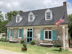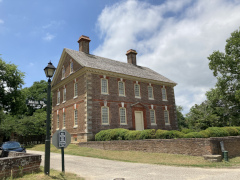 Yes, there is an actual Yorktown village still in operation, and among its riverfront businesses is The Yorktown Pub, with a strong emphasis on seafood as you might imagine. They were quite busy, but we managed to squeeze in and get a crab cake sandwich for my companion and a coleslaw for me. The food was pretty good and the views quite different after spending a week in the more inland feeling Williamsburg. (All of the pictures are of the historic village, other than the last one, which shows approaching the riverfront area. Unfortunately, we didn't take a picture of the pub.)
