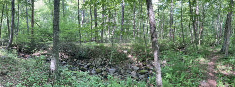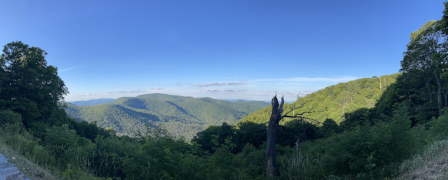Today we drove ten miles north to the Skyland Resort. Skyland predates the national park by several decades, having been built as a private mountain resort with lots rented out to people who then built their own cabins. An interesting footnote is that the resort owner wanted to ensure good sales at his restaurant, the Polluck Room, so he put a rule into the rental agreement that cabins could not have kitchens in them. And thus, to this day, there are no cabins with kitchens at Skyland, though there are a number of much newer lodge buildings for those who want more modern amenities. My companion stayed at Skyland for both of his previous visits to Shenandoah National Park: once for two nights, and once for an amazing ten days in July of 2019. Unfortunately, he wasn't blogging back then, but perhaps someday he'll try to write a retrospective blog about that experience. Today, we wanted to relive a few fun memories by returning to Skyland for lunch and dinner, and then doing a hike a little ways north of Skyland. The pictures below are a random mix taken at both Skyland and at an overlook near Skyland