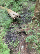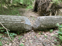 In the Pinnacles area of the park, we took a hike on the Hannah Catlett Mountain Trail. We had hoped to do a full loop, but after getting out about two-and-a-half miles and reaching what looked like a dry creek bed, we decided it would be best to turn around and go back, rather than try to press on and complete the loop. Even with the somewhat cooler temperatures, it was still in the low eighties in the late afternoon, which is not the easiest of weather for hiking. Still, we had fun and enjoyed the views and the peace and quiet of the forest.