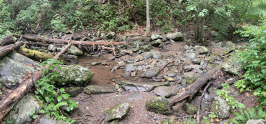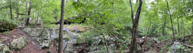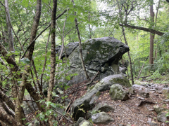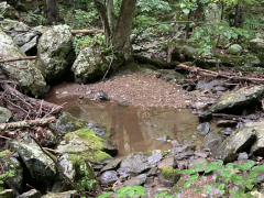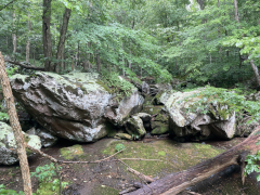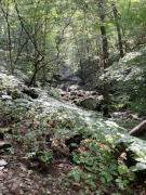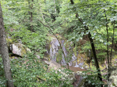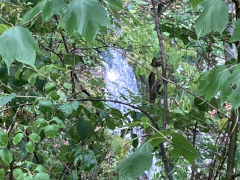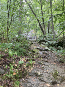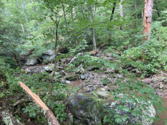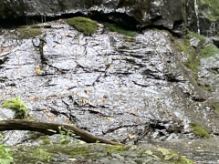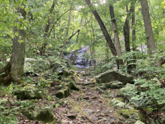 My companion hiked Jones River Falls the last time he visited Shenandoah (on his ten night immersion experience), but he really wanted to do it again knowing it was one of those rare waterfalls where you can get close to the plunge basin, and thus get great views and pictures of the falls. Yes, some people are crazy enough to even go into the plunge basin, and with a lack of signage, I'm not sure what the park officials think about that, but we played it safe and stayed out of the water. It was a little hot today, but it was a great hike, though my companion wanted to push things and continue on to the Doyles River Falls via the connecting trail. That was rougher than he imagined, though he made it to the lower falls and got a few pictures, but he finally used his noodle and accepted that if he was going to make it back to the van, he'd have to turn around there and not try to get on up to the upper Doyles River Falls. Ah well, maybe next time we can see the upper falls via the direct trail and add them to our life list. All in all, though, he did about 6.4 miles of hiking to wrap up this Shenandoah visit.
