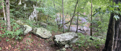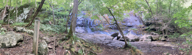 As we did the last two times we visited Shenandoah, we checked out and headed south about twenty-eight miles to the Loft Mountain Wayside, which was our home base for much of the rest of the day. We started out with a BBQ sandwich lunch, then we headed south another five miles for one last waterfall hike.