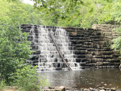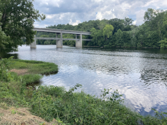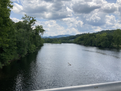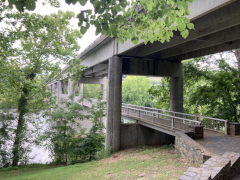 After a grab-and-go brunch, we set off back to the north to revisit the James River Visitor's Center and get a close-up view of the river itself. The crossing of of James River is the lowest point of the Blue Ridge Parkway, and between the lower altitude and the river setting, you can feel the difference in climate between here and the majority of the Parkway that is up on the mountain ridges. At this point, the James is not nearly as wide as it is in Richmond and eastward out towards the ocean, but it's still a nice, moderate size river. The visitor's center is small, but on the grounds is a preserved section of a canal that used to run alongside the river. There's also a small, modern, pedestrian pier under the Parkway bridge, letting you get out over the water and look up and down the river, and a Trail of Trees hiking trail that runs about a mile through the nearby woods.