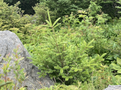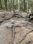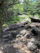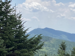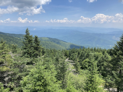 So, we got up early, hopped in the van, headed back east out US 74, got a little breakfast at a Dunkin Donuts, and then went on out to the town of Old Fort, where we turned off on a small road that wound back in the woods for about three miles. At the end, we came upon a mass of vehicles parked everywhere. I don't think there was even an illegal parking space available. We'd been warned that Catawba Falls had just reopened recently and was going to be really popular, but we were not expecting this. After circling the parking area twice, we gave up and headed back to Old Fort. My companion plotted out a course and we headed up to Mount Mitchell, as our visit in 2009 had been under less than optimal conditions, so it seemed like a great substitute for Catawba, even if we wouldn't get to meet up with any of the IT folk there.