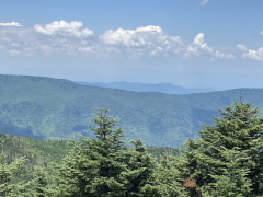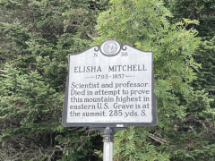 Mount Mitchell is the highest point not only in North Carolina, but the highest point in the continental United States east of the Mississippi River. The park is only accessible from the Blue Ridge Parkway via a mile and a half road at milepost 355.3. Along the way to the peak, you can stop off at the park's restaurant, which we saved for on our way out. We drove to the parking area and then took to the paved walkway, which is a deceiving concept: one tends to think that if a walkway is paved, it's going to be fairly easy to traverse. Not this one, for it's all uphill, and kind of steep. Even though it's only about half a mile to the top, that's one long, long half a mile. Still, the views were stunning today (last time we had fog and the temperatures were in the low 40's if not lower). We took it all in and got some pictures, then went back down to the parking area and looked through the little museum there. Then, my companion got his hiking gear and hiked out to Mount Craig, the second highest peak east of the Mississippi. He said the hike wasn't all that bad, perhaps even easier than getting to the top of Mount Mitchell in spite of this being a rocky backcountry trail of a little over a mile. On returning, we went down to that restaurant and had a late lunch before heading back to the Parkway.