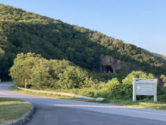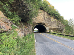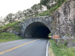Craggy Gardens is one of those places that's so interesting because there's simply no place else like it anywhere else along the Parkway. They're hard to describe, but its a lot of lower bush-like ground cover as opposed to hiking through a forest of tall trees. We hiked a trail from the visitor's center back to the picnic area, which is accessed from a completely different road off the Parkway, yet is not terribly far away as the crow flies and the trail goes. Along the way, there's this cool gazebo nestled in the woods were we sat and relaxed for a good, long while. Most of the pictures below are actually of the Craggy Pinnacle tunnel, which is just a short walk from the visitors center, and thus a good tunnel to walk through and get an up-close look at how they were made. Fun fact: There are twenty-six tunnels along the Blue Ridge Parkway, and all but one are in North Carolina, and the majority are actually in the quarter of the Parkway southwest of Asheville!