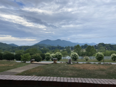 One of the biggest draws of the Dillard House property is its unique restaurant. It's not an all-you-care-to-eat restaurant, but the kind of place where they bring out a full southern meal in serving dishes and place it on the table for everyone to enjoy family style. There's plenty to go around and no one ever leaves hungry. We had lunch here and almost didn't need dinner later ... well, almost. The second picture below is the view from the front of the restaurant – even after all of those spectacular Shenandoah and Blue Ridge Mountain views we got to see, this one's pretty darn good, too.